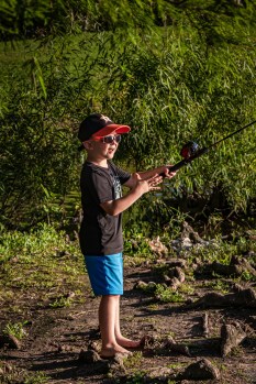 Youngster fishing in Shy Pond. It looks like he may have a bite. There really are fish in the pond as well as many turtles.